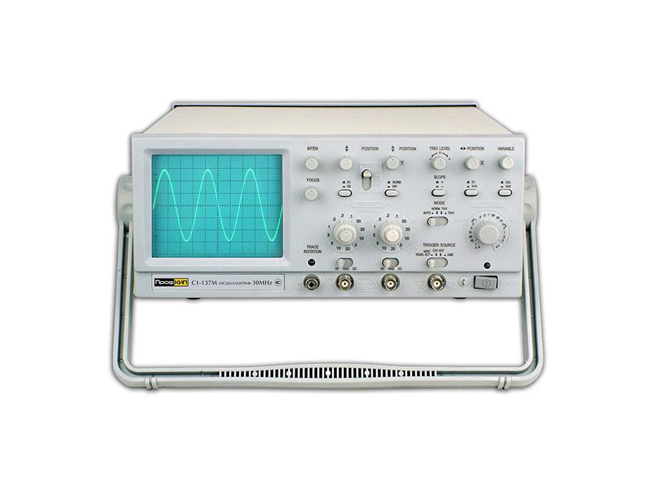 Осциллограф универсальный ПрофКиП С1-137М предназначен для исследования электрических сигналов путем визуального наблюдения их формы и измерения амплитудно-временных параметров сигнала по калиброванной шкале ЭЛТ. Осциллограф универсальный ПрофКиП С1-137М применяются при регулировке, ремонте и обслуживании РЭА в лабораторных, цеховых и полевых условиях эксплуатации.