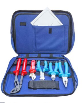 Набор диэлектрических инструментов до 1000 В из 13 предметов для производства профилактических и электромонтажных работ в сетях и установках до 1000В.