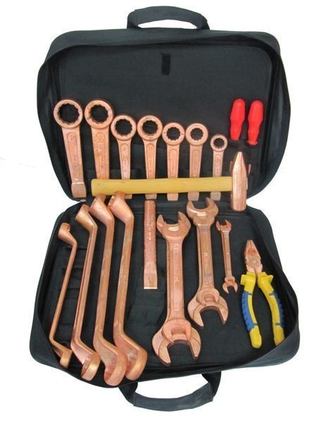 Набор инструментов механика оператора НГД состоит из специализированных ключей, покрытых слоем высококачественной меди. Омедненный инструмент позволяет проводить работы во взрывоопасных зонах, там где обычным стальным инструментом будет работать опасно.