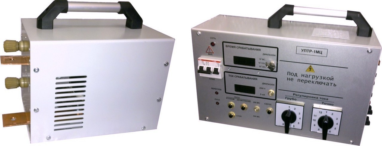 Устройство УПТР-1МЦ предназначено для проверки характеристик электромагнитных, тепловых и электронных расцепителей автоматических выключателей переменного и постоянного тока (с номинальным током до 350 А включительно) посредством подачи определённой величины синусоидального тока частоты 50 Гц (с диапазоном выходных токов 0 - 5000 А) на расцепитель и замером времени его прохождения.